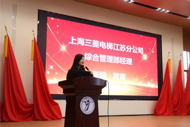 张愉代表上海三菱电梯有限公司江苏分公司向同学们提出了新的期望,激励大家不断提升专业素养,以创新精神和扎实技能在电梯行业中闯出一片天地,为行业发展注入新的活力。