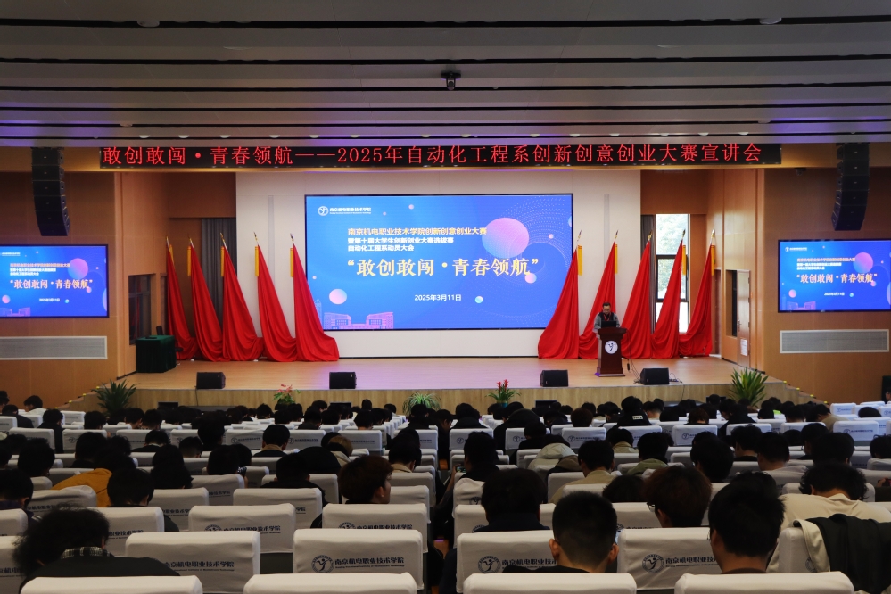 为切实做好2025年创新创意创业大赛备赛工作,激发师生创新创意创业潜能,持续挖掘打造种子项目,311日下午,自动化工程系在乐学楼101报告厅举办“敢创敢闯 青春领航”创新创意创业大赛动员会暨专利挖掘宣讲会。自动化工程系副主任张海红、系党支部书记杨军系教学副主任顾晟吉、专业班主任吴芬、系办公室主任孙小翔和500余名学生齐聚一堂,共同开启年度创客赛事征程。